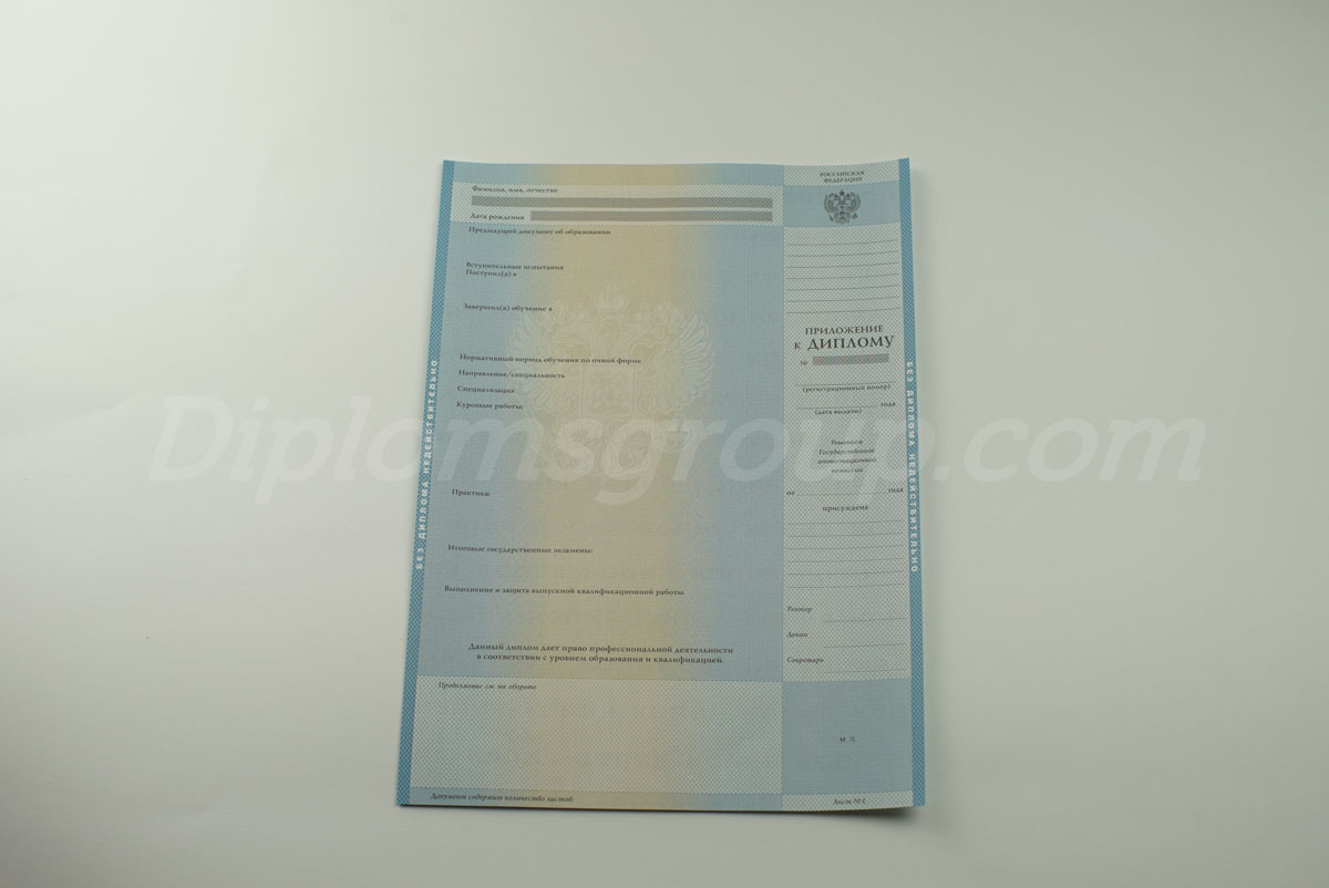 Со времен СССР и после его распада документ сильно изменился. Появились голограммы, оттиски, водяные знаки, печати и прочая защитная символика. Стали использовать специальную бумагу и бланки ГОЗНАКа. Стандартный диплом с 1997 по 2003 -й годы выглядел следующим образом: